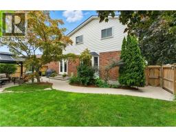 Custom builder's home offers extra height, generous living spaces, 4 spacious bedrooms, 2.5 Baths and a layout perfect for growing families. Located in a quiet mature neighborhood bordering Ancaster, meadowlands shopping, parks, Schools, and transit, groceries. Offering easy access to Highway 403 and the Lincoln Alexander Parkway. As you enter you can appreciate the spacious foyer, formal Living room and formal dining room. Custom eat-in kitchen with updated appliances. Separate family room with Gas fireplace and a walk out to your own private paradise. Main floor mud room currently used as office space has a 2pc washroom & separate side entrance offering a versatile work-from-home space. The second floor offers 4 bedrooms, an ensuite and a 4-piece primary washroom & a super-functional, large laundry room w/ plenty of storage on the 2nd floor. The basement includes a spacious family room & games room providing extra living space for family and entertainment, huge storage. Enjoy seamless outdoor living with concrete patio and covered entertainment space. The back yard is private and fully fenced. The grounds are spectacular and perfect for entertaining, this home offers prime location, in a sought-after neighborhood. This one-owner home has been impeccably cared for & maintained top to bottom! Book your showing before you miss out on this gem. THIS IS A MUST SEE!!! (id:61594)