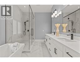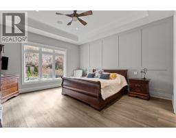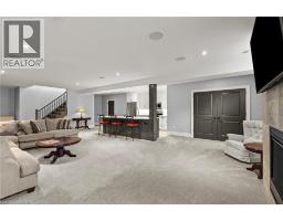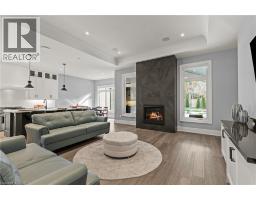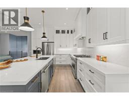 This luxury custom-built 2580 sqft bungalow offers exceptional craftsmanship, elegant design, and highly functional multi-generational living spaces throughout. Fully finished basement makes it nearly 5000 sqft finished! Designed with versatility and comfort in mind, the home features three complete kitchens each finished with custom cabinetry, quartz countertops, premium appliances (two gas ranges and one electric), three refrigerators, three dishwashers, and built-in microwaves-perfect for hosting large gatherings or offering private, independent living for extended family members. The main level showcases 12-foot coffered ceilings, engineered hardwood flooring, custom roller blinds, and beautifully appointed living areas highlighted by two gas fireplaces. For added everyday comfort, the home includes heated tile floors in three bathrooms and the lower-level kitchen. A self-contained 1-bedroom granny suite with its own entrance and dedicated parking provides privacy and flexibility, while the fully finished lower level includes two additional bedrooms, a full bathroom, a walk-out, and a spacious walk-in fruit cellar. The property features two full laundry rooms, each equipped with washer, dryer, laundry tub, and storage. Additional upgrades include Russound integrated sound and satellite wiring, a full security camera and alarm system with monitoring option, and an in-ground sprinkler system for effortless exterior upkeep. The home is fully fenced, professionally landscaped with thoughtful rock and garden design, and includes a covered outdoor porch to enjoy peaceful surroundings in every season. Every detail - from cabinetry to ceiling design to layout functionality - reflects the care put into creating a home that is both luxurious and deeply livable. This is a rare offering that combines elevated finishes, spacious design, and true multi-use living under one roof, providing comfort, privacy, and long-term value for its next owner. (id:61594)