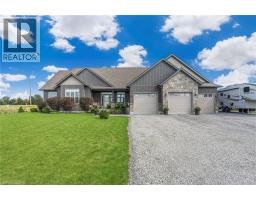 Welcome to 3 Silverthorne Court - a stunning custom built bungalow situated in a desirable rural cul de sac just 30 minutes to Hamilton. Built in 2019, this thoughtfully designed layout includes 3 main floor bedrooms, 2 full bathrooms, 2 half bathrooms, and a finished basement with a separate entrance from the garage - ideal for a future in-law setup. Leading up to the property, you’ll notice the well manicured lawn overlooking a beautiful farmers field. Enjoy parking for 10 vehicles in the large driveway, plus an impressive triple car garage with soaring ceilings - perfect for a golf simulator, hoist, boat storage, workshop, and more! The open concept main floor features impressive 10 foot ceilings, loads of natural light, a floor to ceiling fireplace, and luxury vinyl plank flooring. A true highlight is the sunroom - offering a front row seat to the beautiful countryside. The gorgeous kitchen boasts stainless steel appliances, a huge island for entertaining, and a walk through pantry for added convenience. Heading downstairs, you’ll find a sprawling finished basement with an additional bathroom, providing loads of space for all of your entertaining needs, and tons of thoughtfully designed storage space. BONUS - natural gas heating, fibre optic internet, and a 16 KW Generac generator - a rural dream! Enjoy over 3,000 square feet of finished living space in a rural package that speaks for itself. Click on multimedia for more information on this amazing property! (id:61594)