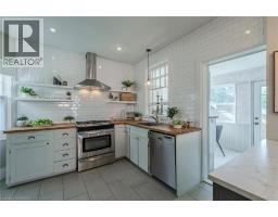 30 Banfield St, Paris ON - where community, picturesque views, and small town charm meet. If you’ve ever dreamed of owning a Craftsman style home with timeless character and soul, this is your chance. Nestled on a rare 250-foot deep lot, this home offers unmatched privacy and a backyard that feels like your own private retreat. Step outside and take in the sweeping views of the Nith River Valley, where every evening rewards you with unforgettable sunsets. Whether it’s hosting summer gatherings, rinsing off in the outdoor shower, or simply enjoying a quiet moment on the deck, this outdoor space is pure magic. Inside, the home’s character shines through original hardwood floors, elegant pocket doors, a grand wood staircase, and a copper-faced fireplace surrounded by custom built-ins. The charm of yesteryear is paired seamlessly with modern updates, including a thoughtfully designed kitchen with stainless steel appliances, butcher block counters, granite breakfast bar, and a stunning ceiling-height backsplash. Upstairs, three spacious, carpet-free bedrooms reflect the same heritage beauty, while the expanded main bathroom adds a touch of luxury. The finished lower level provides even more living space with a cozy rec room, den or optional fourth bedroom, bathroom, and plenty of storage. The detached 1.5-car garage with hydro and a wood stove—is ideal for a workshop or hobbyist’s dream space. And then, of course, there’s Paris. Known as the prettiest little town in Canada, living here means walking historic streets lined with shops, cafes, and restaurants, exploring trails along the Grand and Nith Rivers, and becoming part of a warm and welcoming community. With recent updates (roof 2024, electrical 2013/2017, windows 2014, refinished hardwood 2016), this home offers both heritage charm and modern peace of mind. It's not just a home; it’s a lifestyle, a retreat, and a rare opportunity to own a piece of Paris history with the kind of property you may never find again. (id:61594)