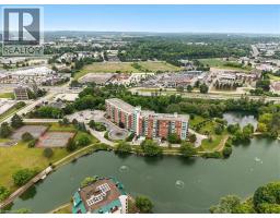Discover your urban sanctuary in vibrant Uptown Waterloo! This 2-bedroom, 2-bath condo in a sought-after building blends tranquility with convenience. Steps from Conestoga Mall, three grocery stores, restaurants, and boutiques, you’ll relish the walkable lifestyle. Commuting is a breeze with the nearby LRT station, bus stop at King & Blue Springs Dr., and easy access to the expressway. Plus, Conestoga College, University of Waterloo, and Wilfrid Laurier University are nearby. Marvel at breathtaking views of Four Wells Lake and its lush treeline, framed by floor-to-ceiling living room windows that bathe the unit in natural light. Surrounded by scenic trails, ponds, and streams, this condo offers a serene escape with nature at your doorstep. Inside, the 961 sq. ft. layout includes a galley kitchen with breakfast nook and ample storage. The open-concept living/dining area is perfect for entertaining or quiet nights in, while two spacious bedrooms and two full baths provide flexibility and privacy. In-suite laundry, a private storage locker, and one underground parking spot (plus a second surface space) add everyday convenience. Elevate your lifestyle with exceptional amenities: secure entry, updated balconies, touchscreen directory, and elevators. Unwind in the rooftop lounge with sundeck and gas BBQ, or host events in the party room (for a small fee), both with kitchens and restrooms. Savour summer barbecues by the back pond’s pergola, or book the guest suite for overnight visitors. With ample visitor parking, bike storage, and a library, every detail enhances your living experience. Priced at $449,900, this move-in-ready condo is a blank canvas awaiting your personal touch. Don’t miss the chance to embrace Uptown Waterloo’s perfect blend of urban energy and natural serenity. Interior photos are unavailable out of respect for tenant privacy. Showings can be arranged with notice, and vacant possession is available if purchased for personal residence. (id:61594)