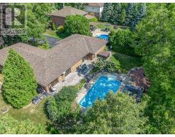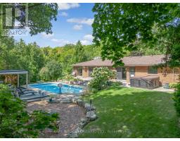 Welcome to a rare opportunity in one of Waterdown's most peaceful, family-oriented neighbourhoods. Tucked away from through traffic, this quiet and private sprawling bungalow offers almost 4,000 total sq ft of thoughtfully designed living space on a mature, beautifully landscaped lot. Inside, you'll find acacia engineered hardwood flooring, quartz kitchen countertops, updated bathrooms, newer windows and patio doors, along with a new furnace and A/C. The spacious recreation room with custom bar is perfect for entertaining, while the backyard oasis features a heated saltwater pool, stamped concrete patio, and lush perennial gardens. An extra-long driveway and full-sized double garage provide ample parking, with space for an RV or boat. A true family home in a one-of-a-kind Waterdown setting. (id:61594)