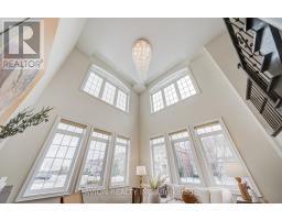 Welcome to this impeccably maintained 4-bedroom residence, thoughtfully designed for the modern growing family. The stunning main floor showcases dramatic 18-ft (approx.) open-to-above ceilings in the living room, complemented by expansive windows that flood the space with natural light. Elegant hardwood flooring extends throughout the main and upper levels.The open-concept kitchen features granite countertops and high-end appliances, seamlessly flowing into a bright breakfast area and inviting family room. A separate formal dining room, enhanced with designer lighting, creates the perfect setting for refined entertaining.Upstairs, you'll find 4 generously sized bedrooms and 3 full bathrooms, offering exceptional comfort and functionality for the entire family. The walk-up basement presents outstanding potential for a recreation space, home theatre, or private guest suite.Step outside to a beautifully interlocked, low-maintenance backyard-ideal for effortless outdoor enjoyment. Conveniently located just minutes from Vaughan Mills, Canada's Wonderland, schools, and major highways, this home delivers an exceptional blend of luxury and everyday convenience. Furnace -2021. Irrigation system on side. (id:61594)