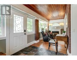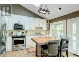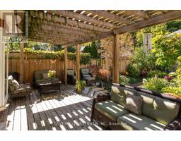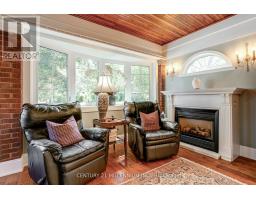 Discover this beautifully appointed, fully detached two-storey home nestled in the heart of Downtown Brampton, offering approximately 2,000 square feet of refined living space. Ideally located within walking distance to local entertainment, the GO Train station, and a variety of amenities. Open-concept layout featuring a spacious sunroom/porch dorned with transom and bay windows, complemented by a cozy gas fireplace. Formal living and dining area with wide-plank hardwood flooring, crown molding, and charming leaded glass windows. Extended hallway leading to a bright eat-in kitchen with ample white cabinetry, island with pull-out drawers, open shelving, and stainless-steel appliances. Convenient three-piece bathroom with a separate shower stall and main-level laundry. Inviting family room with cathedral ceilings and skylights, offering abundant natural light. Step out to a pergola, covered wooden deck overlooking a whimsical English-style garden, complete with ivy, perennial blooms, and a tranquil pond. Three generously sized bedrooms with large picture windows. Four-piece bathroom featuring a Whirlpool soaker tub and expansive vanity. Separate side entrance to a spacious recreation room with a Franklin-style gas fireplace. Fourth bedroom and a two-piece powder room, ideal for guests or extended family. Double car garage and a private driveway accommodating up to five vehicles. Rich character throughout, highlighted by exquisite millwork and thoughtful modern upgrades. This exceptional property blends timeless charm with contemporary comfort, an absolute must-see! (id:61594)