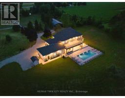 Presenting a once in a lifetime property. Welcome home to the iconic Falkland Springs Estate at 30 Brant County Highway 2, Brant. A generational retreat on over 10 acres of scenic countryside. Custom built in 2024, this elegant showpiece is perched atop a breathtaking landscapea legacy property offering unmatched privacy and grandeur. Equipped with outbuildings and ponds, start the tour through a gated entry that leads up a winding and fenced road. Commanding a staggering 7472 sq ft en masse, with nearly 2000 sq ft in the oversized 4 car garage and 7100 sq ft of which is masterfully crafted finished living space. The home radiates timeless sophistication. Find 6 bedrooms and 6 bathrooms including a separately accessed and full in law suite and full kitchen. Enter the home into a bright and inviting foyer. To the left, a richly appointed office with custom built-ins and a gas fireplace sets a refined tone. On the right, an elegant dining room showcases intricate ceiling details, ideal for formal gatherings. The heart of the home is the open-concept kitchen and living room. Coffered ceilings and a cozy gas fireplace create warmth, with sight-lines of private resort-style backyardcomplete with an outdoor kitchen, covered patio, gas fireplace, and heated saltwater pool. The chefs kitchen outfitted with high end, built-in appliances. It seamlessly blends functionality with luxury with an abundance of custom cabinetry and ample counter space. Upstairs enjoy a coffee bar leading into the primary suite with walk through closet, a stunning en suite and a balcony overlooking the pool and mature trees. The bright basement is home to the secondary suite but is still versatile and has room for the whole family! Enjoy an additional rec room, a sauna with plenty of seating and a dedicated theatre room. This home has it all! For the hobbyist the larger of the outbuildings was once a hatchery is 5387 sq ft. For the discerning buyer; dont wait, begin your legacy today. (id:61594)