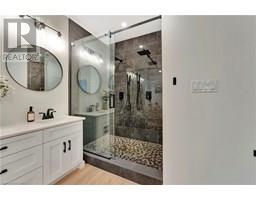 Wrapped in a striking blend of brick and hardy board, the exterior of this luxury bungalow is beautifully illuminated by soft exterior pot lighting, while a spacious triple car garage offers both curb appeal and everyday functionality. A charming covered front entry sets the tone with timeless character, leading into a bright, welcoming foyer where natural light streams through elegant double sidelights. Inside, the home opens to a stunning, open-concept layout with rich flooring that flows seamlessly throughout the main level. The living room stands as a warm and inviting focal point, anchored by a sophisticated accent wall that adds texture and depth to the space. At the heart of the home is a chef-inspired white kitchen, highlighted by a bold black-accented island and ceiling-height cabinetry that blends style with exceptional storage. A generously sized walk-in pantry enhances both function and flow. Adjacent to the kitchen, the dining area offers an oversized sliding walk-out to a spacious covered patio—perfect for effortless entertaining and year-round indoor-outdoor living. The main level features three thoughtfully placed bedrooms, offering comfort and privacy for the whole family. The primary suite serves as a true sanctuary, complete with a luxurious 5-piece ensuite featuring dual vanities, a deep soaker tub, and a glass-enclosed shower. Two additional bedrooms are complemented by a beautifully appointed 4-piece bathroom, while a stylish main floor laundry room provides added convenience. Downstairs, the fully finished lower level expands your living space with two additional large bedrooms and a full bathroom—ideal for teens, in-laws, or guests. A spacious rec room offers endless versatility, whether you're envisioning a home theatre, gym, or playroom. (id:61594)