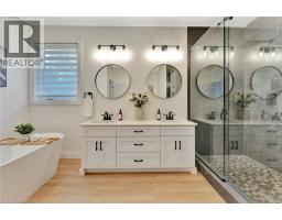 Wrapped in a striking blend of brick and hardy board, the exterior of this luxury bungalow is beautifully illuminated by soft exterior pot lighting, while a spacious triple car garage offers both curb appeal and everyday functionality. A charming covered front entry sets the tone with timeless character, leading into a bright, welcoming foyer where natural light streams through elegant double sidelights. Inside, the home opens to a stunning, open-concept layout with rich flooring that flows seamlessly throughout the main level. The living room stands as a warm and inviting focal point, anchored by a sophisticated accent wall that adds texture and depth to the space. At the heart of the home is a chef-inspired white kitchen, highlighted by a bold black-accented island and ceiling-height cabinetry that blends style with exceptional storage. A generously sized walk-in pantry enhances both function and flow. Adjacent to the kitchen, the dining area offers an oversized sliding walk-out to a spacious covered patio—perfect for effortless entertaining and year-round indoor-outdoor living. The main level features three thoughtfully placed bedrooms, offering comfort and privacy for the whole family. The primary suite serves as a true sanctuary, complete with a luxurious 5-piece ensuite featuring dual vanities, a deep soaker tub, and a glass-enclosed shower. Two additional bedrooms are complemented by a beautifully appointed 4-piece bathroom, while a stylish main floor laundry room provides added convenience. Downstairs, the fully finished lower level expands your living space with two additional large bedrooms and a full bathroom—ideal for teens, in-laws, or guests. A spacious rec room offers endless versatility, whether you're envisioning a home theatre, gym, or playroom. (id:61594)