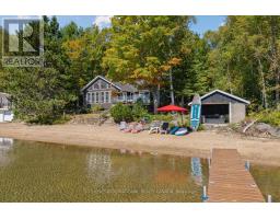 Welcome to beautiful Papineau lake in the Hastings Highlands. This gorgeous 4 season lake house sits on an incredible 1.93 acre lot which is level, treed and has over 200 feet of sand beach waterfront, south east exposure with all day sun on the dock and beach. Flanked by Crown land on one side of the property for added privacy. The lake house has been completely renovated throughout and is being sold turnkey. 1252 square feet of living space in the main house, featuring a brand new kitchen with stainless steel appliances, new cabinets, backsplash, centre island and butcher block countertops with cozy wood stove. Overlooking and walk- out to a large 3 season room with beautiful views of the lake. New luxury vinyl plank floors, pine ceilings and lighting throughout. The living room has a wood burning fireplace, wall to wall sliding doors to a new 320 square foot deck with dining & lounging space & edgeless glass railings. The views from the living room and from the deck are spectacular. The primary bedroom has a new 3 piece ensuite and there are 2 other bedrooms and new 4 piece bath. New structural footings, lifted, levelled and encapsulated the crawl space. Insulated the attic & vapour barrier. New siding, soffits and downspouts, windows (except sunroom & main bath). New laundry room addition off the kitchen. New in wall electric heaters wifi controlled. EV charger, new electrical panel with 200 amp service & Generac transfer switch. Large 340 square foot guest Bunkhouse with wood stove. Dry land boat house to get out of the sun and store water toys. New landscaped path to the waterfront, widened and regraded driveway offering lots of parking. Papineau is a clean, deep lake, large enough for motorized boating. 30 minutes to Bancroft or Barry's Bay, 2.5 hours from Durham region and Ottawa area. Start making your cottage life memories today with a gorgeous and turnkey waterfront package. (id:61594)