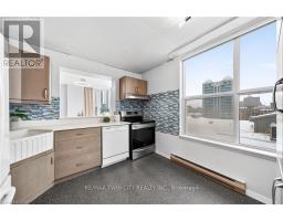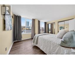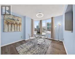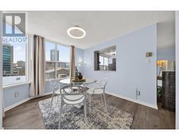 Welcome to Queen's Place Condominiums, offering exceptional value in a prime downtown location. Steps to the entrance of Victoria Park ( one block). This bright 1,153 sq. ft. corner unit features 2 bedrooms plus a den and 2 bathrooms with a carpet-free layout and oversized windows that fill the space with natural light and panoramic city views. The spacious foyer leads to a generous primary bedroom with fabulous renovated ensuite, a well-sized second bedroom, and a large open-concept living area with a sunroom/den. Excellent for a home office. The separate dining area is surrounded by windows, creating a bright and inviting space. Windows facing both North East Nd South West offer gorgeous sunrise and sunset views. The updated kitchen offers custom quartz counter tops, modern cabinetry and a built in coffee bar. Enjoy in-suite laundry, a storage locker, and a desirable sought-after, ground level # 8 unit owned garage parking space. Both fan coil HVAC units newly replaced in 2025. Ideally located within walking distance to Victoria Park, LRT, Google, the Kitchener Market, restaurants, cafés, shopping, and trails. Building amenities include a party room, rooftop patio with BBQ, controlled entry, on-site superintendent, elevator, visitor parking, and pet-friendly living. Condo fees include heat, water, air conditioning, underground parking, and storage. Very well managed condominium. A fantastic opportunity in a highly desirable location - book your private viewing today. (id:61594)