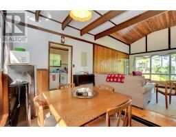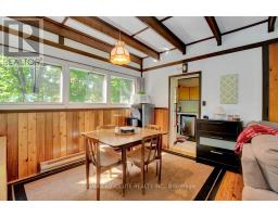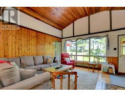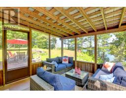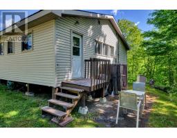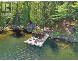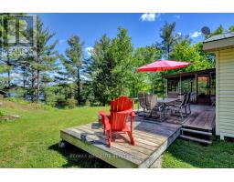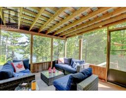 Rare opportunity to own 6.9 acres of waterfront with approximately 850 feet of shoreline and mature mixed forest offering exceptional privacy. This rustic three-season cottage features tongue and groove pine ceilings, a durable metal roof, and an open-concept living area with expansive lake-facing windows. Three bedrooms provide cozy accommodations, while a screened sunroom and spacious deck are ideal for outdoor entertaining. Set slightly elevated, a newer staircase leads down to the water and a large dock in a private bay, perfect for swimming and boating. Property offers excellent future potential to enjoy as-is, build, or explore severance possibilities (buyer to complete due diligence with township). Water source is lake intake. Annual road maintenance fee $134. 24-hour irrevocable on all offers. (id:61594)