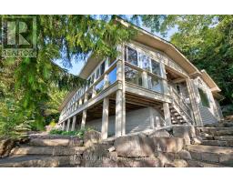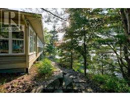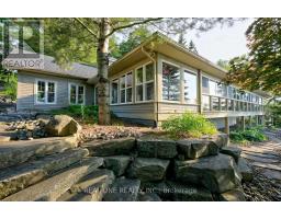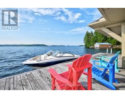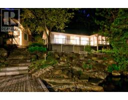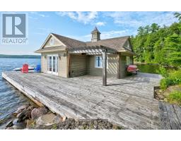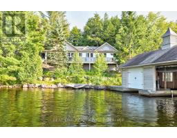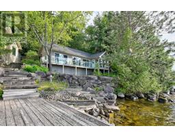 Prime Lake of Bays waterfront just outside Baysville, only a two-hour drive from the GTA, featuring 220 feet of pristine shoreline. This executive family compound offers two beautifully designed cottages. The main cottage boasts three bedrooms and two bathrooms, with a spacious open-concept Great Room that opens onto a 780 sq. ft. porch-perfect for entertaining or relaxing. The fully equipped two-bedroom and one bathroom guest cottage, complete with its own kitchen, is connected by professionally crafted stone pathways and patios, creating a seamless and inviting retreat for family and guests. Just steps from the water, the property includes a two-slip boathouse and generous dock, ideal for swimming, boating, and lakeside living. Enjoy breathtaking sunsets in this serene, private setting, while remaining just minutes from Bigwin Island. (id:61594)