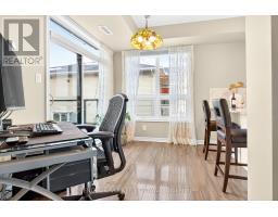 Located in the heart of Chapman Mills, this bright and thoughtfully designed Bravo model 2-bed, 2-bath condo spans approximately 1,038 sq. ft. and features a large walkout terrace. The main living area is warm and inviting, with a seamless flow between the dining, kitchen, and living spaces. Oversized windows fill the rooms with natural light, while the updated kitchen features white shaker cabinetry, granite countertops, stainless-steel appliances, and a peninsula with seating that opens into the dining area with direct access to the terrace. With wood-plank flooring and a clear glass railing, this unit's outdoor space is perfect for morning coffee, unwinding with a book, or enjoying views of the surrounding neighbourhood while dining. The primary bedroom, with a tray ceiling detail and plush carpeting, features ample closet space and leads to an ensuite with a walk-in shower. The well-proportioned secondary bedroom features a large picture window and mirrored closet doors, making it ideal as a children's or guest room. A second full bathroom, located near the unit's entrance, features tiled flooring and a tub/shower combo. Just off the main lobby, access to the garage space and a storage locker make unpacking the car a breeze! With everyday amenities just minutes away, including shopping, grocery stores, restaurants, public transit, and cafés, this home is ideal for both downsizers and young professionals in one of Barrhaven's most desirable neighbourhoods! (id:61594)