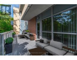 $770.64 MonthlySunny, contemporary two-bedroom corner residence offering exceptional indoor-outdoor living. This beautifully maintained condo boasts a rare, south-facing 315 sq ft oversized terrace featuring NewTechWood decking and tranquil treed views - the perfect private retreat for relaxing or for those with a green thumb. The recently updated interior showcases wide-plank white oak LV flooring, pot lighting, professionally painted throughout; elegant Restoration Hardware lighting, closet organizers and custom drapery. The thoughtfully designed split-bedroom floor plan offers ideal privacy and functionality. The primary suite comes complete with floor-to-ceiling windows, an ensuite bathroom, and walk-in closet. The second bedroom has floor-to-ceiling windows, a deep double closet and a 4-pc bathroom. The kitchen includes a newer stainless steel refrigerator and a breakfast bar. The unit is equipped with a recent full-sized washer and dryer. Tandem two-car parking is included close to the unit locker and elevator. Situated in a quiet, well-maintained building, this terraced unit is a rare find and is ready to be enjoyed this spring. **Furniture is virtually staged - the unit contains the tenant's furniture at present.** (id:61594)