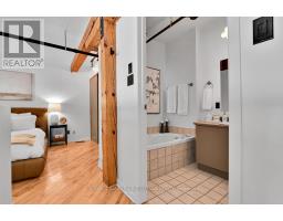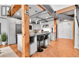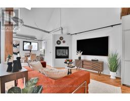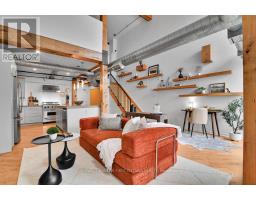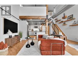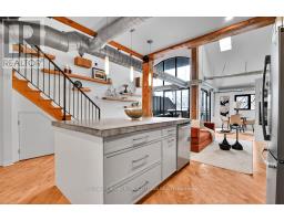 Welcome to Warehouse Lofts, a highly sought-after and truly unique factory conversion in the heart of Little Italy. Located on the top floor, this stunning New York inspired loft offers a rare opportunity to own one of the most distinctive condos in Ottawa. With only 30 units in this boutique buildingthis design-forward residence perfectly blends modern upgrades with the building's authentic industrial character. This spacious 1 bedroom loft condo with soaring ceilings and expansive windows showcasing the building's desirable western exposure with beautiful treetop views. The result is a light-filled space that feels like a private urban retreat tucked above the city. Original architectural details take centre stage, including visible ductwork, and authentic post-and-beam timber construction, celebrating the building's warehouse heritage. The fully renovated designer kitchen is a standout feature, anchored by a custom-built concrete island, carefully selected to complement the loft's industrial aesthetic and high-end appliances. Elegant brass accents, and abundant workspace make this kitchen ideal for both everyday living and entertaining. A versatile den/dining area provides flexible space for a home office or intimate dining area, while the private balcony overlooking green space and the nearby bike path is perfect for urban gardening and outdoor dining with a gas BBQ hookup. Additional highlights include hardwood flooring throughout the main and upper level, underground locker, and access to a secure bike room. Major mechanical updates-including the furnace, air conditioning, and owned on-demand hot water system-were all replaced in 2021. Step outside and you're just moments from Little Italy's vibrant restaurants, cafés, and nightlife, with easy walking access to Dow's Lake, scenic cycling paths, and some of Ottawa's most desirable neighbourhoods. A rare and remarkable loft offering the perfect blend of historic charm, modern design, and unbeatable urban living. (id:61594)