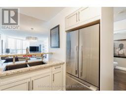 Top 5 Reasons You Will Love This Home: 1) One of the most coveted suites in the building, this residence is positioned on the preferred side of the East Tower and enjoys a permanently protected view, offering rare peace of mind with no future development planned directly in front of the unit 2) Extensively customized beyond builder finishes, the suite showcases engineered hardwood flooring throughout, tall baseboards, and bespoke interior doors, creating a polished, elevated atmosphere from the moment you step inside 3) The kitchen is designed to impress both home chefs and entertainers, featuring quartz countertops, premium custom cabinetry, a brand-new full-size refrigerator, and a professional-grade Fisher & Paykel stove valued at over $10,000, a standout upgrade rarely found in condo living 4) Everyday comfort is elevated with thoughtful upgrades, including a spa-inspired bathroom with a modern TOTO toilet, California shutters on every window, and a built-in sound system throughout, while the spacious bedroom and versatile den offer flexibility for a home office, guest space, or additional living area 5) Outdoor living is equally well considered, with a private balcony complete with a barbeque and patio furniture, ideal for relaxing or entertaining while taking in the view, along with one owned parking space and a second parking spot available for rent, condo fees that include heat, hydro, and water, and access to premium amenities such as an indoor pool, hot tub, sauna, gym, and party room, all just steps from Barrie's waterfront, trails, shops, and restaurants. 843 sq.ft. (id:61594)