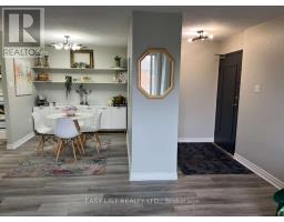 For more info on this property, please click the Brochure button below. Bright and Inviting 3-Bedroom 1.5 Bath Condo in the Desirable White Oaks Area. Discover exceptional value and comfort in this rare, bright and inviting spacious 3-bedroom, 1.5-bath condominium - a perfect choice for families, first-time buyers, or savvy investors. Step inside to a bright and open living space featuring vinyl plank flooring throughout and all-new light fixtures, including ceiling fans in each bedroom. The modern kitchen is sure to impress with quartz countertops, subway tile backsplash, and plenty of workspace for cooking and entertaining. The primary bedroom offers a large closet and a private ensuite bathroom, while two additional generously sized bedrooms provide flexibility for family, guests, or a home office. You'll also appreciate the large walk-in storage room/pantry-a rare find in condo living! Enjoy relaxing or entertaining outdoors on your spacious balcony, with BBQs permitted for year-round enjoyment. This unit also includes an air conditioner, electric fireplace, and dining room consoles, plus a new electrical panel with breakers for added peace of mind. The building is quiet family friendly and well maintained in a park like setting. Offering on-site laundry, with condo fees that include heat, water, and parking-making this an affordable and worry-free lifestyle. Located in the sought-after White Oaks area, minutes from Highways 401 and 402, with schools, parks, malls, bus stops, and countless amenities all nearby. (id:61594)