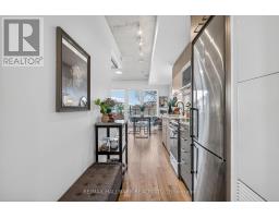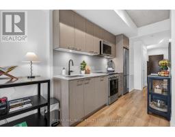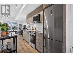 Welcome to elevated urban living in a connected and growing west-end community. This beautifully designed one bedroom plus oversized den suite offers 665 square feet of highly functional space, ideal for professionals, first-time buyers, or downsizers seeking comfort and convenience. The open-concept layout flows seamlessly from the modern kitchen into a bright living and dining area, creating an inviting space to relax or entertain. Floor-to-ceiling windows fill the suite with natural light, while the private balcony overlooks a quiet residential neighbourhood that becomes a lush canopy of mature trees in the summer months, offering a rare sense of calm in the city. The spacious primary bedroom provides a peaceful retreat, and the generous den is large enough to function as a dedicated home office, guest space, or flexible bonus room. A well-appointed four-piece bath completes the interior. Residents enjoy an impressive collection of building amenities including a fully equipped fitness centre, stylish party room, co-working lounge, outdoor terrace with BBQ area, and thoughtfully designed common spaces that make working from home or hosting friends effortless. High-speed internet is included in the maintenance fees. Unmatched connectivity puts the city at your doorstep with easy access to the GO Train, UP Express, and the future Old Weston SmartTrack line, along with nearby streetcar routes and major commuter corridors. Whether heading downtown, to Pearson Airport, or across the GTA, getting where you need to go is simple. A smart investment in both lifestyle and location. *High-speed internet is included in the maintenance fees, ideal for remote work or streaming.* (id:61594)
