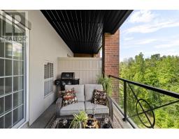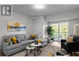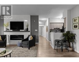 $485 MonthlyEmbrace treetop serenity in one of Barrie's most picturesque communities. Set within the Ardagh Bluffs and wrapped by the natural beauty of Bear Creek Eco-Park, Greenwich Village is prized for its calm setting, walkable green space, and well-kept buildings. Suite 304 delivers that coveted "bungalow feel without the maintenance" and a rare, unobstructed eco-park view from every window and the oversized covered balcony, and yes, barbecues are permitted! Offering approximately 1,101 sq. ft., this bright, open-concept layout features two generous bedrooms, two full baths, and a seamless living/dining space that extends outdoors for effortless entertaining. Thoughtful interior upgrades include 9' ceilings that enhance the airy feel, high-end laminate flooring throughout, a custom built fireplace feature wall, and a well-appointed kitchen with modern slab-style cabinetry, Quartz counters, tile backsplash, under-mount double sink, stainless steel appliances (waterline to fridge), and upgraded plumbing fixtures. A compact water softener and in-suite laundry adds day-to-day comfort. The light, neutral bathrooms keep the palette fresh and timeless. Your private primary retreat offers a large walk-in closet and spacious ensuite. The second bedroom is ideal for guests, family, or a dedicated home office with a view. 1 Surface parking and 1 Underground parking with storage locker are included, practical must-haves for year-round living. Being on the third floor positions you level with the canopy, creating a peaceful, elevated outlook that changes beautifully with the seasons. Suite 304 is a hidden gem in one of Barrie's most desirable low-maintenance communities. (id:61594)