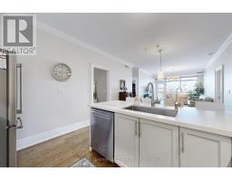 Welcome to Suite 305 at 35 Baker Hill Blvd A Rare Opportunity in the Heart of Stouffvilles Premier Community! Discover over 1,400 sq ft of beautifully appointed living space in this elegant low-rise condominium. This spacious suite features 2 generously sized bedrooms plus a versatile den ideal as a third bedroom, home office, or media room. Step into a welcoming foyer with designer ceramic tile that opens into an expansive open-concept layout. Enjoy 9-ft ceilings, crown moulding, pot lights, and rich hardwood flooring throughout. The custom kitchen is a standout, featuring stainless steel appliances (2023), stylish backsplash, extended cabinetry, and a breakfast bar perfect for casual dining or entertaining.The primary suite is a private retreat, complete with a walk-in closet, a sleek 3-piece ensuite, and direct access to a large balcony also accessible from the main living area, offering seamless indoor-outdoor living. Additional highlights include a laundry room with stacked washer/dryer (2023), custom shelving, and laundry sink. Recent upgrades in 2023 include new flooring, updated countertops, and renovated bathrooms, ensuring a move-in ready experience. Enjoy exceptional building amenities, beautifully landscaped grounds, and access to scenic walking paths. This unit includes two underground parking spots and a locker for added convenience. Situated just minutes from shops, dining, parks, and everyday essentials, Suite 305 offers the perfect blend of luxury, comfort, and location. Dont miss this rare gem! (id:61594)
