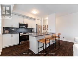 $404.45 MonthlyUpgraded, sun-filled corner unit in the heart of Churchill Meadows offering 751 sq. ft. of bright, open-concept living space with panoramic windows and 9-ft ceilings. The spacious living and dining area flows into a modern kitchen featuring a center island, quartz countertops and backsplash, an undermount Kraus sink with Kraus faucet, over-the-range microwave, and sleek cabinetry-perfect for casual dining or entertaining. This beautifully maintained unit also includes newer laminate flooring and baseboards, fresh paint, updated porcelain tiles in the bathroom, modern light fixtures, and two private balconies accessible from both the living room and primary bedroom. Low maintenance fees and unbeatable convenience with easy access to public transit and major highways (403, 401 & QEW), plus close proximity to Credit Valley Hospital, top-rated schools, and parks-making it an ideal choice for families, professionals, or investors. (id:61594)