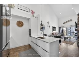 Four-Season Living at Its Finest in Mountain House. Welcome to this beautifully maintained, top-floor loft condo in one of Blue Mountain's most desirable communities. Freshly painted, this turnkey 3-bedroom, 2-bathroom retreat is ready for enjoyment - simply arrive and start living the lifestyle.The bright, open-concept layout is highlighted by soaring vaulted ceilings, expansive windows, and a warm gas fireplace that creates an inviting space to relax after a day outdoors. The modern kitchen features built-in appliances and flows seamlessly into the living and dining areas, while stylish laminate flooring adds a clean, contemporary feel throughout. Step outside to your private balcony and take in partial escarpment views - the perfect spot for morning coffee or evening unwinding.Designed with adventure in mind, the unit includes convenient ski and snowboard storage at the entrance plus the rare bonus of two exclusive-use parking spaces, a standout feature within Mountain House.Enjoy resort-style amenities just steps from your door, including a year-round heated outdoor pool and hot tub, fitness centre with yoga studio, and a welcoming après-ski lounge with gas fireplace. Ideally located along the trail system with easy access to Blue Mountain Village, private and public ski clubs, golf courses, Scandinave Spa, beaches, and downtown Collingwood.Whether you're searching for a weekend escape, full-time lifestyle property, or income-generating investment, this exceptional condo offers comfort, convenience, and year-round appeal. (id:61594)