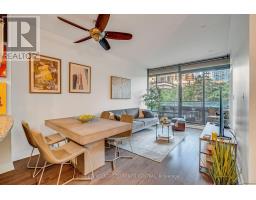 Welcome to the epitome of luxury living in the heart of Toronto's most coveted neighbourhood. Discover Unit 306 at 18 Yorkville Avenue, a stylish and highly functional 1+1 Bedroom suite designed for the discerning urbanite.This 8'11''ceiling height unit is a perfect blend of comfort and elegance. Step inside and be greeted by sleek laminate flooring that flows throughout the open-concept layout. The modern kitchen is a chef's delight, equipped with stainless steel appliances, elegant granite countertops, and a practical breakfast bar perfect for casual dining.The versatile den is a standout feature. Open to the living and dining areas, it's an ideal space for a home office, complete with a built-in bookcase for all your storage needs. Natural light floods the main living area, which extends to an oversized, west-facing balcony. From here, you can enjoy a serene view overlooking Town Hall Square, a peaceful urban park adjacent to the historic Yorkville Library - a truly unique and tranquil setting. The primary bedroom offers a private retreat with floor-to-ceiling windows providing a lovely, tree-filled view and features a generously sized closet. Living at 18 Yorkville means enjoying an unparalleled lifestyle. The building is renowned for its top-of-class amenities, including a state-of-the-art fitness center, sauna, party room, and a spectacular rooftop terrace with BBQ stations. With a 24/7 concierge and on-site management, the building is exceptionally well-maintained, offering a worry-free living experience. This unit includes the rare and highly valuable convenience of a large storage locker on the same floor as the unit, and an underground parking space. In a neighbourhood where parking is a challenge, this is a significant asset. Located at the intersection of Yorkville and Yonge, you are steps away from Toronto's finest restaurants, designer boutiques, and cultural landmarks. This is more than a home; it's a lifestyle. Don't miss this opportunity! (id:61594)