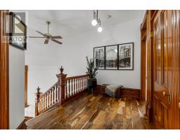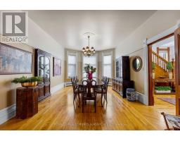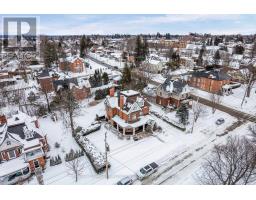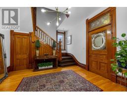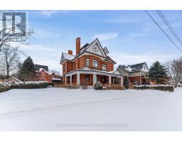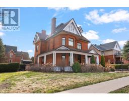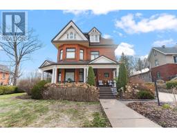 Built in 1905, this remarkable 3-storey brick home exudes timeless Victorian sophistication while offering modern comfort and thoughtful updates throughout. Meticulously maintained to preserve its historic charm, this stately residence showcases elegant architectural details and refined craftsmanship in every room. Step inside to a grand main floor that begins with a striking entryway leading into an inviting living room, a unique library rich with character, and a formal dining room perfect for hosting. Every space tells a story, flowing seamlessly into the sprawling kitchen designed for both function and beauty. The kitchen opens to a bright, window-lined breakfast nook overlooking the backyard, creating the perfect morning retreat. A powder room completes this level of effortless hospitality. The second floor introduces a comfortable family room with exquisite stained-glass windows, a serene primary suite with a four-piece ensuite and walk-in closet, a convenient laundry room, an additional spacious bedroom, and two more bathrooms. Ascend to the third floor to discover a spectacular bedroom suite complete with a fireplace - an ideal hideaway for relaxation - alongside an additional bedroom, a storage space and another full bathroom complete with clawfoot tub for a vintage luxury feel. The lower level extends the home's character with a one-of-a-kind wine cellar, a rejuvenating sauna, a three-piece bathroom, and generous storage/workshop space. Set on beautifully landscaped grounds, this extraordinary property is framed by manicured gardens and a historic wrap-around covered porch that invites quiet reflection or grand entertaining alike. An in-ground sprinkler system provides easy maintenance in the summer months. A true masterpiece of heritage and grace, this home celebrates over a century of elegance. 24 Hour Irrevocable on all offers. (id:61594)