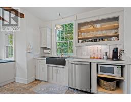 Step into The Schoolmasters House, a beautifully preserved c.1818 residence that blends historic charm with modern comfort in the heart of Old Town Niagara-on-the-Lake. Set on a generous 144 x 104 ft lot with landscaped gardens and a tranquil fish pond. With four bedrooms, three of which include private ensuites, and two additional full bathrooms, this former Bed and Breakfast is ideal for extended families, home office, or rental use. Several bedrooms feature private entrances, making them perfect for guests or short-term stays. Original wide-plank wood floors run throughout the home there is no carpet while four wood-burning fireplaces and a gas fireplace add warmth and character to every space. The main floor includes a spacious primary bedroom with ensuite, a second full bathroom with a deep soaker tub, laundry, and a large family room that also offers space for a home office or hobby area. The chefs kitchen is outfitted with a professional gas stove, abundant prep surfaces, and generous storage. Meals can be served in the formal dining room or enjoyed casually at the large island with breakfast bar. Upstairs, you'll find two additional ensuite bedrooms one with private stairs and an exterior entrance alongside a fourth bedroom, another full bath, and a cozy sitting area. This multi-generational, multi-family home offers exceptional flexibility and income potential. The home also includes powered workshops, a garden shed, and a garbage shed. Major upgrades include a new cedar roof on the front (2021) and rear (2024), and updated furnace and central air in 2017. A heritage grant is available to assist with roofing on the addition along Gage Street. This is a rare opportunity to own a piece of Niagara-on-the-Lakes history, with timeless character and modern convenience just steps from the shops, dining, and charm of Old Town. (id:61594)