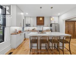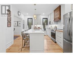 Welcome to 307 Old Percy Road. A storied Victorian in the heart of Castleton, reimagined with a modern farmhouse sensibility that has to be seen to be believed. Over $200,000 in recent improvements touch nearly every surface and system. From the curb, crisp white siding, a black steel roof, a rebuilt covered porch on a flagstone landing, and a canopy of trees set the tone. Inside, wide plank pine floors run through a light-filled main level designed around a showstopper kitchen. White shaker cabinets run to the ceiling, a quartz island anchors the room, perimeter counters warm the palette, and a one of a kind reclaimed antique wood range hood steals the show. The living room centres on a stacked stone gas fireplace with reclaimed timber beam mantel and built-ins, while a vaulted sunroom addition off the back pours in arched window light and opens to the private yard. A separate entrance creates real potential for a main floor in-law suite or home office. The main floor three piece bath features slate tile, quartz, and heated floors that carry into the laundry. Upstairs, a magazine-worthy primary retreat envelops you in deep sage with botanical accent wallpaper, a built-in bookcase, and a reading nook over wide plank floors. Two additional bedrooms carry the home's Victorian soul through painted plank floors, original panel doors, and sloped ceilings. The upstairs bath is a boutique moment with marble look tile, hex mosaic floors, double-thick quartz, and a frameless glass shower. New steel roof and eaves, new kitchen, renovated baths, nearly all new windows and doors, spray foamed basement, reinsulated main level, new A/C, and freshly painted siding. Outside, a fully fenced and treed yard features a water-feature pond, garden shed, and space to breathe on just under half an acre. Steps to the library and general store. An easy drive to the 401, presqu'ile, and Lake Ontario. Separate road entrances on Old Percy & Spring St (id:61594)