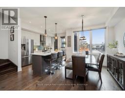 Welcome to 3076 Cascade Common, a beautifully upgraded 2-bedroom, 3-storey townhome located in Oakville's desirable Joshua Meadows community. Offering approximately 1,310 sq ft of living space plus an estimated 412 sq ft private rooftop terrace, this home is perfect for entertaining or relaxing with prime south and west-facing views. The main level features 9 ft ceilings with pot lights on dimmers and a seamless flow from the modern kitchen to the dining and living areas. The kitchen boasts stainless steel appliances, a large island with built-in sink and seating, quartz countertops, under-cabinet lighting, and a glass tile backsplash, and offers a walkout to a private balcony - ideal for morning coffee or evening unwinding. The living area is complete with an electric fireplace finished in modern concrete. Additional highlights include $47,000 in builder upgrades upon construction (2017), such as premium hand-scraped solid white oak hardwood floors with an elegant cashmere finish throughout, upgraded stairway spindles, and thoughtful design touches that elevate the home's style and comfort. The private rooftop terrace is a true retreat, featuring gas and water hookups for BBQs, outdoor dining, and gardening. Enjoy the quiet setting within walking distance to parks, shops, and local amenities. William Rose Park is just steps away, offering tennis, pickleball, baseball, splash pad, and more. Conveniently close to trails, restaurants, GO Transit, and Oakville Trafalgar Memorial Hospital. Monthly POTL fees of $64.67 cover road maintenance and garbage removal. Don't miss this opportunity to own a stylish, well-maintained home in one of Oakville's most sought-after neighbourhoods - Joshua Meadows! (id:61594)