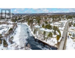 $934.09 MonthlyENJOY WATERFRONT LIVING IN THE HEART OF MUSKOKA'S COTTAGE COUNTRY WITH EASY ACCESS TO NATURE & DOWNTOWN HUNTSVILLE! Experience waterfront living along the Muskoka River in this bright and inviting condo, tucked away on a quiet dead-end street yet just steps from the charming downtown core of Huntsville with riverside parks, boutique shops, dining, cultural centres, and community events. Enjoy endless outdoor adventures nearby, from scenic walks along the Hunters Bay Trail to sun-soaked days at Hutcheson Beach on Lake Vernon and exploring the natural beauty of Arrowhead Provincial Park. This well-maintained building offers shared waterfront amenities, including a private dock and community BBQ area, while your private open balcony provides a serene spot to take in the surroundings. Inside, oversized windows fill the space with light, highlighting upgraded hardwood floors throughout. The open-concept kitchen, living, and dining area features a centre island, generous prep space, and sliding glass walkout to the balcony, creating a seamless flow for entertaining or relaxing at home. A spacious bedroom and a flexible den are paired with a full 4-piece bathroom featuring a tub, and convenience is complete with a dedicated underground parking space and additional visitor parking available. This Muskoka #HomeToStay offers an inviting cottage country lifestyle, blending tranquil waterfront living, endless outdoor adventures, and the charm of a vibrant community right outside your door. (id:61594)