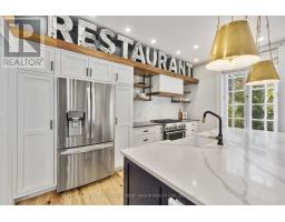 Set along a charming downtown street, this 1850s heritage home blends timeless character with modern comforts, offering generous living space inside and out. Designed with entertainers in mind, the property features an inground pool, hot tub, and a pool house with its own guest bathroom. Step through the front entry hall and discover period details and charm. The front living room is bathed in natural light from a large window and enhanced by built-ins. The space flows seamlessly into the formal dining room. The back hall with walkout leads to a spacious, updated kitchen with exposed brick, a large island with breakfast bar, farmhouse-style sink, pendant lighting, stainless steel appliances, subway tile backsplash, and open shelving. An adjoining breakfast room offers a bright spot for morning coffee, complete with coffee bar, drinks fridge, fireplace, and desk nook. The family room creates the perfect setting for cozy evenings. A guest bathroom and laundry area complete the main floor. Upstairs, the primary bedroom offers double closets and abundant natural light, while the bathroom features wainscoting detail. Five additional bedrooms feature unique touches, including exposed brick and decorative fireplaces. A second bathroom with a double vanity, cozy sitting area, and a walk-in closet. Outdoors, a picturesque front veranda overlooks the property, leading to the expansive pool and patio area with plenty of room to lounge. The poolside cabana boasts a walk-up bar with sink, entertaining space, and a guest bathroom. A secluded patio offers an ideal spot for alfresco dining, relaxation and a hot tub. Mature trees, perennial gardens, an invisible fence, and a detached garage complete the property. All this, just steps to downtown shops, schools, Cobourg Beach, the marina, and with easy access to the 401, this remarkable home offers the perfect opportunity to set down roots in Northumberland. (id:61594)