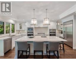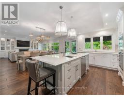 Set on prestigious Lakeshore Road in Roseland one of Burlington's most sought-after neighbourhoods this custom-built residence offers over6,000 square feet of finely finished living space on a rare217-ft-deep property. Located within the Tuck/ Nelson school district, just steps from the lake, it combines an exceptional address with remarkable scale and design. The main level is anchored by an elegant great room with a gas fireplace, custom built-ins with glass accents & expansive windows overlooking the rear gardens. A private home office, formal dining area with a wet bar, & a chef's kitchen designed for both daily living & entertaining set the tone for the home. The kitchen features a large quartz island with seating, dual dishwashers, dual Frigidaire Professional wall ovens, a gas range with decorative hood, warming drawer, microwave, & a Kitchen Aid S/S refrigerator with ice & water. Custom soft-close cabinetry, a walk-in pantry, & a walkout to the covered patio complete this well appointed space. A separate main floor laundry room with custom cabinetry, quartz counters & washer/ dryer adds convenience. Upstairs, four bedrooms each feature their own private ensuite baths & custom closet organizers, including a self-contained in law suite with a separate entrance featuring a living area, bedroom, and full bath, ideal for extended family or guests. The third-floor loft, currently used as a gym, offers flexibility as an additional bedroom or creative studio. The fully finished lower level extends the living space with a large recreation room with a wet bar, sitting area with gas fireplace, sixth bedroom with ensuite, music/media room,& a walk-up to the backyard. Set on a 200ft-deep lot, the property offers rare privacy & scale, with a resort-style backyard featuring a heated saltwater pool, stone patio, covered terrace, &outdoor kitchen. A three-car garage & additional parking complete this home, just minutes from downtown Burlington & the lake. Luxury Certified (id:61594)
