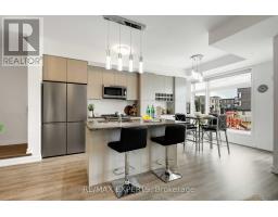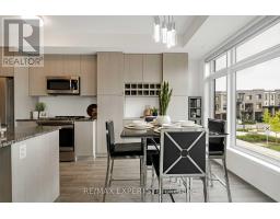 Experience modern living at its finest in this stylish 2-bedroom, 3-bath townhouse located in Pickering's desirable Duffin Heights. Built in 2021 and meticulously maintained by original owner, this home features an open-concept layout with 9-ft ceilings, large picture windows, custom zebra blinds with wand control, upgraded lighting, and extended kitchen cabinetry. The chef-inspired kitchen offers granite countertops, stainless steel built-in appliances, a breakfast island, and a custom wine bar. Plus, your balcony is complete with a gas line hookup for your bbq! Upstairs, both bedrooms boast their own private ensuites, alongside the convenience of upper-level laundry. Additional upgrades include an elegant oak staircase with metal pickets. Parking is effortless with a private garage and driveway for 2 cars. Perfectly situated just minutes from Hwy 401/407, GO Station, Seaton Centre, Seaton Hiking Trail, Riverside Golf, and top-rated schools, and more! This move-in ready home blends comfort, style, and location. (id:61594)