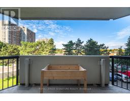Welcome to this beautifully renovated 2-bedroom split layout condo with solarium, 2 bathrooms, and 2 parking spots, offering 1,182 sq ft of stylish living. Fully updated in 2020, the modern kitchen features all-new cabinetry, granite countertops, stainless steel appliances, and a farmhouse-style sink. Enjoy the comfort of new vinyl flooring throughout, pot lights, motorized blinds, crown moulding in the living room, and fresh paint in the living/dining areas. The 3-piece bathroom boasts a new vanity, sink, and walk-in shower, while the 2nd bedroom includes upgraded closet doors and an organizer. Additional highlights include a glass-door wall-mounted display cabinet in the dining area. Ensuite laundry for convenience. This sought-after community offers superb amenities: 24-hr gated security, indoor and outdoor pools, sauna, gym, and much more. Steps to parks, TTC, restaurants, and with private access to the plaza, this unit provides exceptional value in a prime location. Don't miss it! (id:61594)