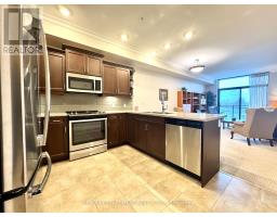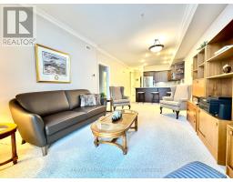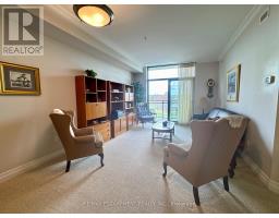 Welcome to "The Gardens by Maranatha", a fully wheelchair-accessible 55+ life lease community located in the heart of mature South Burlington. This thoughtfully designed 1 bedroom plus den residence spans approximately 985 sq. ft. and is situated on the 3rd floor, creating an ideal setting for comfortable, low-maintenance retirement living. The bright, open-concept layout features a spacious kitchen with stainless steel appliances, ample cabinetry, and lower cabinets equipped with convenient pull-out drawers for enhanced accessibility. The kitchen flows seamlessly into the dining and living areas. The living room connects to a private balcony. The primary bedroom includes a walk-in closet and a wheelchair-accessible bathroom complete with a roll-in shower and grab bars. A versatile den provides flexible space for a home office, or hobby room. Additional conveniences include an automatic unit door opener, wide doorways, and in-suite laundry with custom cabinetry, designed with accessibility in mind. Residents enjoy more than 10,000 sq. ft. of outstanding amenities, including a fitness room, woodworking workshop, library, games lounge, coffee shop, main floor lounge, party and meeting rooms, outdoor terraces, and a beautifully appointed 4th-floor rooftop terrace with BBQs and raised garden beds. Secure underground parking, storage lockers, and guest suites add further comfort and convenience. Ideally positioned steps from shopping, public transit, churches, parks, lakefront trails, the hospital, Senior's Centre, library, and downtown Burlington, this welcoming community blends connection with convenience.Monthly fees include heat, water, building insurance, maintenance, landscaping, snow removal, property taxes, phone, internet, and common elements, ensuring a truly carefree lifestyle. A warm, vibrant community designed for independent living - The Gardens by Maranatha is a place you'll be proud to call home. (id:61594)