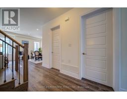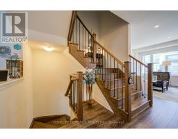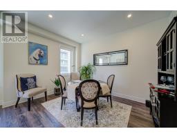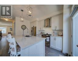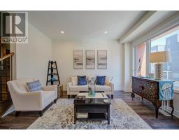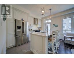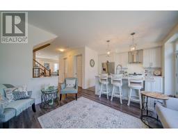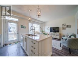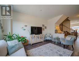 Highly upgraded executive townhouse in the prestigious Preserve community, featuring 3 bedrooms, 3 bathrooms, and a 2-car garage. Beautifully maintained and move-in ready with designer neutral décor throughout. Spacious main living area on the first floor filled with natural light, complete with stylish zebra blinds for adjustable brightness and privacy. Elegant family room with open-concept layout, large windows, tray ceiling, pot lights, and a sleek built-in fireplace with wall-mounted TV. Modern kitchen with island and breakfast bar, quartz countertops, upgraded stainless steel appliances, professional hood fan, and a stunning backsplash. Dining area with walk-out to a private balcony, perfect for entertaining. Featuring smooth 9-ft ceilings throughout all levels, a beautiful oak staircase, and premium finishes throughout. The primary bedroom offers a walk-in closet and a 4-piece ensuite. Ideally located close to top-rated schools, a new hospital, great shopping, and scenic trails. Don't Miss This One! (id:61594)