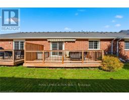 Experience maintenance-free luxury living in this beautifully maintained condo located in one of Woodstock's most sought-after communities! This home offers exceptional comfort, style, and functionality with high-end finishes and thoughtful upgrades. Step inside to an inviting open-concept main level featuring engineered hardwood flooring throughout. The chef's kitchen is a true standout, with quartz countertops, stainless steel appliances, and LED under-cabinet lighting-perfect for both cooking and entertaining. The spacious living room includes a cozy gas fireplace and sliding patio doors leading to your private back deck, complete with a power awning for shaded relaxation or outdoor gatherings. The primary bedroom suite is a peaceful retreat, featuring double closets and a stunning 3-piece ensuite with a walk-in tiled shower. A 2-piece powder room and laundry area on the main level add convenience to everyday living. The finished basement provides even more space to enjoy, with a large rec room featuring a second gas fireplace, a dedicated office area, and a 4-piece bathroom. Additional features include an owned water softener, ample storage, and direct garage access to the main level. Located just minutes from shopping, trails, and Highways 401 & 403, this home offers the perfect balance of comfort, convenience, and community. (id:61594)