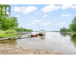 Welcome to your lakeside retreat on Bobs Lake! Impeccably updated 3 + 2-bedroom, 2 + 1-bathroom bungalow nestled on private sandy shoreline in Tichborne. From the moment you arrive, the landscaped grounds and striking metal roof set the tone for refined yet relaxed living.Step inside to discover a spacious interior finished with hardwood floors and oversized windows framing water views. The chefs kitchen is a showpiece, featuring granite countertops, stainless steel appliances and a convenient breakfast island. Adjacent, the sunlit dining area opens through sliding glass to a generous deck with clear-pane railing ideal for entertaining.Retreat to the primary suite, complete with ensuite bath and lake vistas. Two additional main-level bedrooms share a modern full bath, while a lower-level wing offers two more bedrooms, a full bath and versatile family room perfect for guests or home office.Outside, the fun continues at the waters edge: new stairs lead to your private sand beach, where a custom dock and powered gazebo (complete with satellite TV and hydro) await summer gatherings. A private road down to the lake ensures easy access. Back at the home, a heated two-car garage, generator plug at the hydro meter. With every detail thoughtfully curated from the granite counters to the gazebo amenities this bungalow embodies vacation at home. Embrace lakeside living in style. Schedule your private tour today. (id:61594)