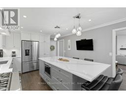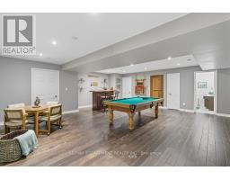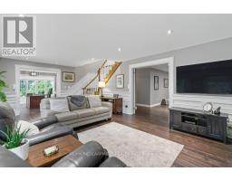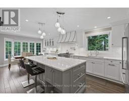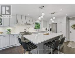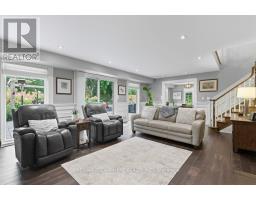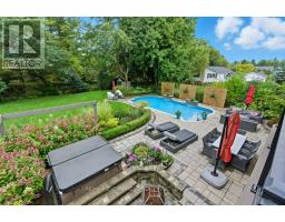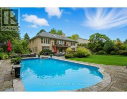 Exquisite Branthaven built 3+1 bedroom, 3 bathroom bungalow on beautiful, mature Carlisle street! Absolutely stunning and extensive landscaping that will truly take your breath away! The rear yard paradise includes an incredible saltwater pool with two water features, hot tub, beautiful stone work, full irrigation and is an absolute gardener's dream! The gorgeous interior has been renovated throughout with a stand out kitchen that offers a large island, quartz counters, high end appliances including a a 36 inch Thermador gas stove, pot filler and beautiful cabinetry! A spacious living room/dining room with gas fireplace and walk out to a composite deck, vaulted ceilings and two skylights, 3 bedrooms including a primary suite with luxurious ensuite, two additional good sized bedrooms and a main bathroom complete the main level! The open hardwood staircase takes you to a fabulous walkout lower level with a warm and inviting family room with gas fireplace with built-in shelving, a large office, a fourth bedroom, a full bathroom, a large games room, a sauna and a lovely laundry with walk-out! Adding a kitchen to this home would create an ideal multi-generational opportunity! Additional features of this home include hardwood throughout upper and lower level, crown moulding, updated furnace and a/c, updated stone driveway, two sheds and incredible curb appeal! A timeless residence with pride of ownership evident throughout! (id:61594)