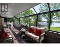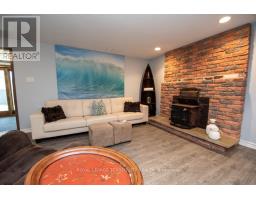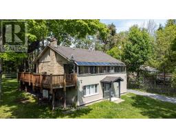 Welcome to your dream lakeside retreat! Nestled at the end of a quiet street, this beautifully updated waterfront home offers serene views, modern comforts, and all the charm of cottage living. Step inside to a bright, open-concept layout featuring a cozy brick fireplace and large windows framing picturesque views of the water. The kitchen is well-maintained with white cabinetry, plenty of counter space, and direct access to the dining area. Enjoy morning coffee or sunset cocktails in the glass-enclosed sunroom, perfect for all seasons, with panoramic views of the lake and lush backyard. Outside, relax on the expansive wrap-around upper deck or stroll down to your private shoreline, where you'll find a fire pit, dock, and plenty of room for entertaining. The separate double-car garage features a cement floor and its own dedicated electrical panel, a great space for hobbies, storage, or a potential workshop. Whether you're looking for a year-round home or a weekend getaway, 31 Alpine St is the perfect place to unwind, entertain, and soak in the beauty of lakefront living. Floors renovated 2023. New roof on garage 2023 (id:61594)