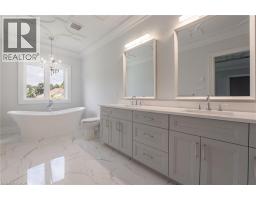 Quality and luxury in this exquisite 2025 4-bed (all with en-suites), 6 bath custom build in an exclusive pocket in south Aldershot, steps to the lake, Lasalle Park, and the Burlington Golf and Country Club! Enjoy a premium street position on a quiet cul-de-sac offering 4 spacious bedrooms, each with its own ensuite. Over 5100 sq ft of luxuriously finished floor space with every convenience for the busy family. Impressive foyer with beautiful, polished porcelain inlay, white oak hardwoods, soaring ceiling height to the second floor and walk-in, lit closet with custom organisation. Sun-filled main floor home office for live/work arrangements and a convenient oversized powder room. Dine with large groups of friends and family in your sophisticated, dedicated dining room with custom tray ceiling, extra-large windows and mosaic white oak hardwoods. Wow to this kitchen! If you love to cook, you will be blown away with both function and aesthetics of this masterpiece. Premium lit Barzotti cabinetry in a neutral palette with premium JennAir monogram series appliances throughout, including double oven, 6 burner gas range, lockable wine fridge, premium quartz surfaces, heated flooring and extra-large walnut-stained island to match the custom walnut range hood. Everyone will enjoy the privacy of their own ensuite, connected to extra-large bedrooms adorned with beautiful, imported tile, white oak hardwoods, custom walk-in closets, designer lighting, and elegant decorative plaster ceilings. Breathtaking primary ensuite shows off imported Italian Calcutta polished porcelain, freestanding soaker tub, Barzotti double sink vanity, heated flooring and glass shower with double rain heads. Entertainers dream in the lower level, complete with a dedicated glass enclosed gym space, sauna with integrated lighting and sound system, kitchen server area and home theatre for movie nights! Nearby top-rated schools, minutes to DT and GO station. Welcome to your BRAND-NEW impeccable dream home! (id:61594)