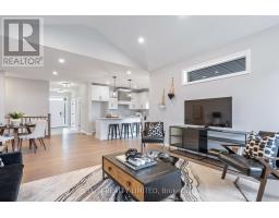 The Sharpton bungalow by Hayhoe Homes is move-in ready and features 2 bedrooms, 2 bathrooms, and a bright open-concept layout with 9' ceilings, hardwood and ceramic flooring, and a great room with cathedral ceiling and gas fireplace. The designer kitchen includes quartz countertops, a tile backsplash, and island, with easy access to a covered rear deck with gas BBQ hookup. The primary suite includes a spacious walk-in closet and ensuite with double sinks and shower. A partially finished basement provides a large family room with space for future bedrooms and bathroom. Includes main floor laundry, double garage, covered front porch, Tarion warranty, plus many upgraded features throughout. Taxes to be assessed. (id:61594)