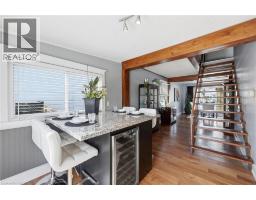 Located on a premium lot in desirable Dundas, this charming home offers three levels of fully finished living space on a quiet street with exceptional walkability, just minutes from McMaster University and downtown Dundas. Ideal for families, downsizers, or investors seeking flexibility in a highly sought-after community. The enclosed foyer welcomes you into a bright open-concept living and dining area, highlighted by a large picture window that fills the space with natural light. The main floor features a comfortable bedroom and an updated 4-piece bath, providing the convenience of one-level living. At the heart of the home, the functional kitchen is designed for gathering, featuring granite countertops, upgraded appliances, and an oversized island with built-in wine fridge, all overlooking the private, fully fenced backyard. The refurbished deck (2025) extends the living space outdoors—perfect for morning coffee, summer dinners, and entertaining. Hardwood flooring runs throughout the main and upper levels, adding warmth and continuity. Upstairs, you’ll find three inviting bedrooms, including a primary suite with a private 2-piece ensuite. The fully finished basement with a separate entrance and new carpeting (2025) adds valuable additional living space, including a recreation room, office area, and a flexible fifth room ideal for guests or in-law potential. Recent updates include furnace (2024), basement waterproofing (2021), water heater (2026) and second level windows (2024). Classic wood siding enhances curb appeal, complemented by a long three-car driveway and a large newer shed (2021). Enjoy proximity to Dundas Driving Park with trails, playgrounds, and green space, as well as easy access to Westdale Village, downtown Hamilton, Highway 403, and Hamilton & Aldershot GO stations. A true turn-key property offering comfort, convenience, and long-term value in one of Dundas’ most desirable neighbourhoods. (id:61594)