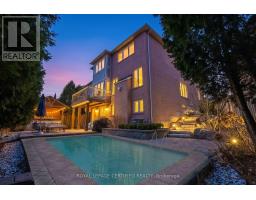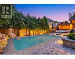 Stunning residence in the highly sought-after Meadowlands community of Ancaster. Nestled on a quiet, family-friendly court, this exceptional home offers over 3,200 sq. ft. of meticulously finished living space, set on a premium pie-shaped lot. Fully landscaped exterior, featuring an interlocked driveway, natural stone steps, and a breathtaking private pooled backyard retreat. Inside, the home showcases a hardwood flooring throughout, elegant oak stairs with wrought iron pickets, and tastefully renovated bathrooms. The custom-designed kitchen is a true centerpiece, with built-in Bosch 800 Series appliances, custom cabinetry, and a large waterfall island. Open-concept living and dining perfectly designed for both entertaining and everyday living. Upstairs, you'll find four generously sized bedrooms, each filled with natural light and complemented by custom closet. The primary suite serves as a luxurious retreat, with a spacious custom walk-in closet and a beautifully appointed 5-piece ensuite featuring a soaker tub, double sink vanity, and a glass-enclosed shower. The walk-out basement adds exceptional spacious recreation area, a wet bar, and wine cellar for hosting or relaxing. Step outside to your own backyard oasis, professionally landscaped with interlocking stone, a heated saltwater pool, and a fully equipped outdoor bar complete with two fridges. Large 10ft Cedar trees will give you the privacy you need. Complete with a double car garage and ideally located near top-rated schools, parks, and convenient access to Highway 403, the QEW, and all major amenities, this remarkable home delivers an unparalleled lifestyle in one of Ancaster's most desirable neighbourhood. (id:61594)