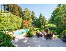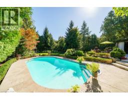 Charming home in the heart of Burlington's prestigious Roseland community, on a STUNNING LOT! This beautifully expanded 4 bed, 5 bath residence offers nearly 9' ceilings on the main floor while maintaining the character of the original home. Special attention was paid to carrying the architectural details, such as the deep trim, throughout. The focus for the addition was light, thus creating a bright open concept living/kitchen area leading to the private backyard. With floor-to-ceiling Pella windows and french doors overlooking the backyard oasis, family living and entertaining, inside and out, are easy to enjoy. Step outside into your private professionally landscaped backyard oasis, with pool, pergola, hot tub, deck, stone patio, and stunning matured perennial gardens. Main floor features include a formal living room, separate dining room, and a private home office ideal for todays lifestyle. Upstairs, the expansive primary retreat impresses with approx. 9.5' ceilings, oversized windows, walk-in closet, and a 5-pc ensuite. Three additional spacious bedrooms and two more full baths complete the second level. The finished basement offers a dedicated media room complete with projector, screen, and audio equipment perfect for family movie nights or entertaining guests, gym and plenty of storage. Garage with inside entry to both mud room and basement. This is a rare and tranquil escape just minutes from top schools, the lake, downtown, shopping and more. Boiler 2025, Electrical and plumbing updated 2005/2006, roof 2006. Loved and updated along the way now ready for your next chapter. (id:61594)