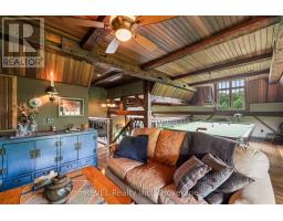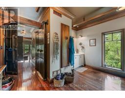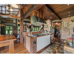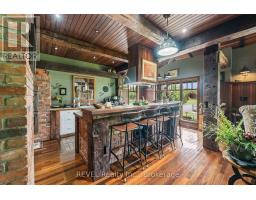 Welcome to 3111 Faywell Road situation in the quaint town of Fonthill. Once known as the 1896 "Old SeedBarn" this country barn style home has been reclaimed and rebuilt on this 17 acres parcel of land that boasts walking trails, a private waterfront pond, a long winding driveway and a golfing green. With nearly 1200 feet of Lake Gibson waterfront, enjoy your coffee with morning waterfront views on your wraparound covered porch and veranda. Make your way inside, the main features a stunning open concept dinning, living and kitchen area with nearly 17 foot ceilings. Custom wainscotting and panels cover every inch of this character home. With exposed beam construction you are able to take in the detailed craftsmanship of this build.Primary bedroom, ensuite and custom walk in closet conveniently located on the main level. Make your way up the staircase to the loft entertainment area with a wet bar. Additionally you will find another bedroom and full bathroom. The home features nearly 10,000 sq/ft; 2550 sq/ft of finished living space, 2400 sq/ft drive in basement, three car garage and additional 4661 sq/ft of constructed spaces. The lower level features a workshop, entertainment area and plenty of space for the car enthusiast. Not to mention the three car attached garage with a second storey waiting for your finishing touches. (id:61594)