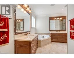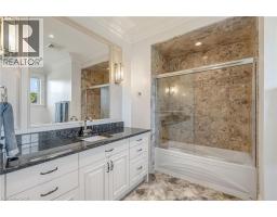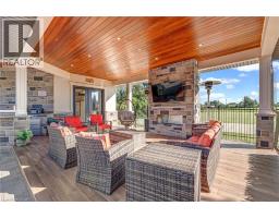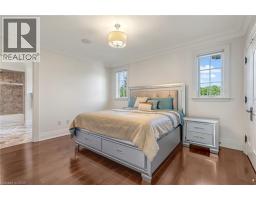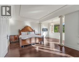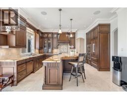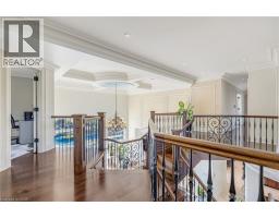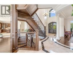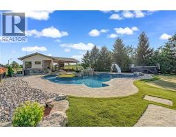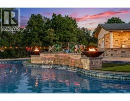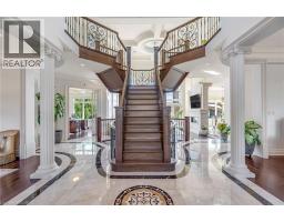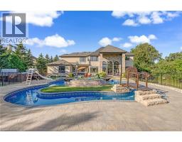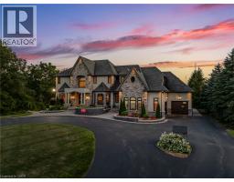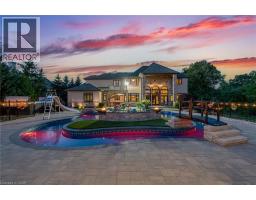 Private Burlington estate property on 1.95 acres surrounded by conservation lands and scenic horse farms. Custom built by Jay Robinson, this exceptional residence offers nearly 7,500 square feet of finished living space and a level of craftsmanship that is increasingly difficult to recreate. Inside, dramatic 18 foot vaulted ceilings, a limestone feature wall and extensive custom millwork create a striking yet welcoming interior. Integrated Sony whole home audio enhances the living experience. The chef's kitchen features premium appliances including Wolf, Liebherr, Marvel, Miele and Fisher and Paykel. The primary suite offers a luxurious retreat with dual walk in closets, spa inspired ensuite and private balcony overlooking protected landscape. Built for reliability and efficiency, the home includes dual furnaces and air conditioning systems, triple sump pump with battery backup, a 20KW Generac generator and 200 amp electrical service. Oversized three car garage with dual EV chargers. Outdoors, the property offers resort style living with a lazy river pool, waterfall feature, swim spa, cabana with five piece bath, built in BBQ, mini putt course and expansive recreation space. Night lit landscaping enhances the estate setting. The separate walk up lower level includes kitchen and bath rough ins ideal for multigenerational living or guest accommodations. Elevator potential. A rare Burlington estate offering privacy, resort style living and exceptional craftsmanship (id:61594)