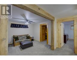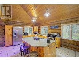 Tired of city living? Looking for a tranquil setting with a unique home? This could be the perfect home for you! This Scandinavian style log home is situated well away from the road for privacy on a beautiful, 11 acre lot with 360 degree scenic views. The home features a grand, open concept style with high vaulted ceilings, a skylight and upper windows providing lots of natural light, huge wood beams and walls, a spacious main floor layout with tiled flooring, a modern kitchen with island and Stainless appliances, and a full 4 piece bathroom. The second level is a huge loft with the Primary Bedroom and ensuite, and plenty of space for the workout and office area too! The basement has 3 additional bedrooms, a generous storage room, utility room, and a REC room. The home has hydronic in-floor heating for your comfort. For the car enthusiast or handyman, outside, there is a 30 X 40 insulated & heated shop/garage with double 10Ft Doors (interior has been divided into a 680s.f. heated workshop which can hold 3 cars and a 420s.f. single car garage with a TESLA charger). The property has lots of mature trees, two spring fed ponds with a small dock to relax on in the evening, and space for your canoe or paddleboat. The setting is perfect for evening hangouts around the firepit or on the porch. There is a 5 acre fenced pasture in front - raise your own livestock or ride your ATV here, another 3 acres at the north end, a small shed and a barn with water and 2 paddocks in addition to the 2 paddocks behind the garage area. There are many possibilities with enough land to have your own hobby farm, grow your own crops and raise your own chickens and eggs if that lifestyle appeals to you. Location is conveniently just north of Mount Forest and is just off Hwy 6 but below the grade of the highway for complete privacy! This home has everything you could want - it has to been seen to really appreciate all it has to offer. Come visit and see for yourself!! (id:61594)