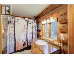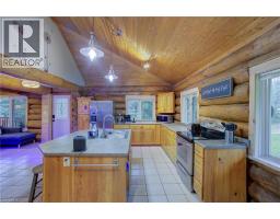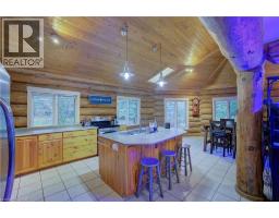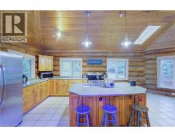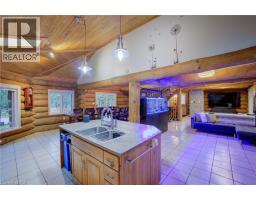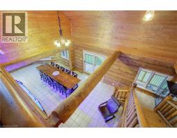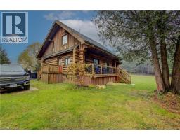 Tired of city living? Looking for a tranquil setting with a unique home? This could be the perfect home for you! This Scandinavian style log home is situated well away from the road for privacy on a beautiful, 11 acre lot with 360 degree scenic views. The home features a grand, open concept style with high vaulted ceilings, a skylight and upper windows providing lots of natural light, huge wood beams and walls, a spacious main floor layout with tiled flooring, a modern kitchen with island and Stainless appliances, and a full 4 piece bathroom. The second level is a huge loft with the Primary Bedroom and ensuite, and plenty of space for the workout and office area too! The basement has 3 additional bedrooms, a generous storage room, utility room, and a REC room. The home has hydronic in-floor heating for your comfort. For the car enthusiast or handyman, outside, there is a 30 X 40 insulated & heated shop/garage with double 10Ft Doors (interior has been divided into a 680s.f. heated workshop which can hold 3 cars and a 420s.f. single car garage with a TESLA charger). The property has lots of mature trees, two spring fed ponds with a small dock to relax on in the evening, and space for your canoe or paddleboat. The setting is perfect for evening hangouts around the firepit or on the porch. There is a 5 acre fenced pasture in front – raise your own livestock or ride your ATV here, another 3 acres at the north end, a small shed and a barn with water and 2 paddocks in addition to the 2 paddocks behind the garage area. There are many possibilities with enough land to have your own hobby farm, grow your own crops and raise your own chickens and eggs if that lifestyle appeals to you. Location is conveniently just north of Mount Forest and is just off Hwy 6 but below the grade of the highway for complete privacy! This home has everything you could want – it has to been seen to really appreciate all it has to offer. Come visit and see for yourself!! (id:61594)
